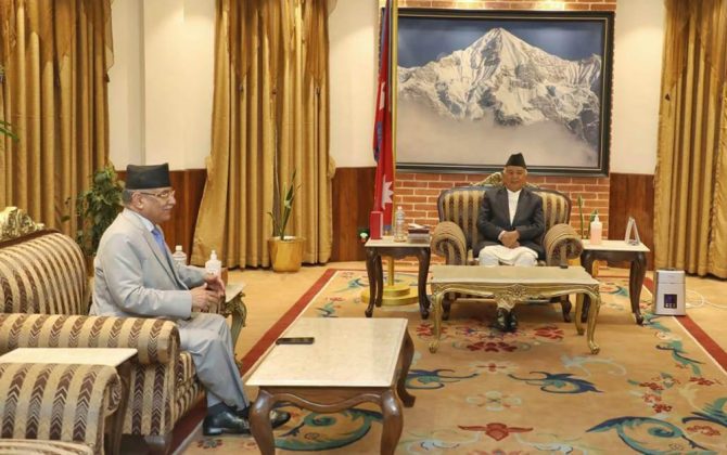 पुरा पढ्नुहोसकाठमाडौँ । राष्ट्रपति रामचन्द्र पौडेल र प्रधानमन्त्री पुष्पकमल दाहाल प्रचण्डबीच भेटवार्ता भएको छ । आइतबार राष्ट्रपति पौडेल र प्रधानमन्त्री प्रचण्डबीच भेटवार्ता भएको हो ।भेटमा देशको समसामयिक राजनीतिक घटनाक्रमका विषयमा छलफल भएको राष्ट्रपतिको सचिवालयले जानकारी